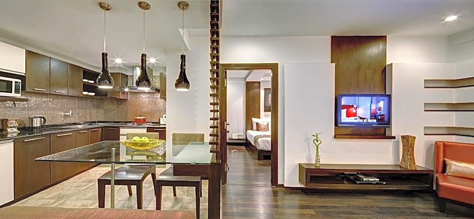 This apartment features a living room with kitchenette, and a flat-screen TV with DVD player.